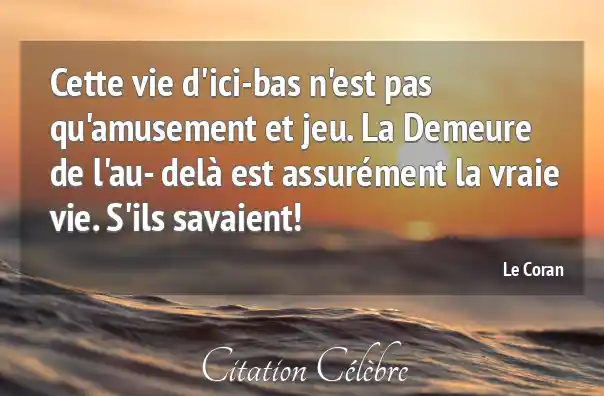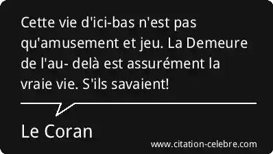 Cette vie d'ici-bas n'est pas qu'amusement et jeu. La Demeure de l'au- delà est assurément la vraie vie. S'ils savaient!