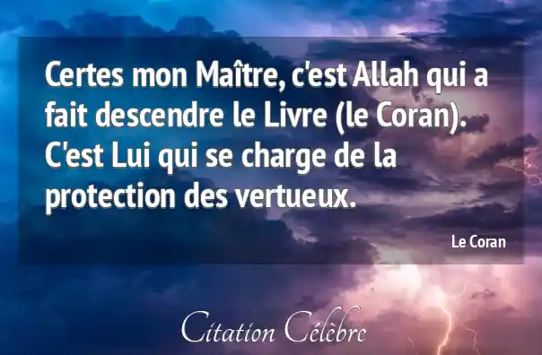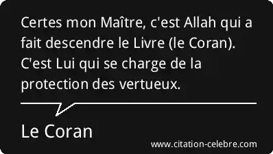 Certes mon Maître, c'est Allah qui a fait descendre le Livre (le Coran). C'est Lui qui se charge de la protection des vertueux.