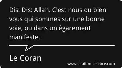Dis: Dis: Allah. C'est nous ou bien vous qui sommes sur une bonne voie, ou dans un égarement manifeste.