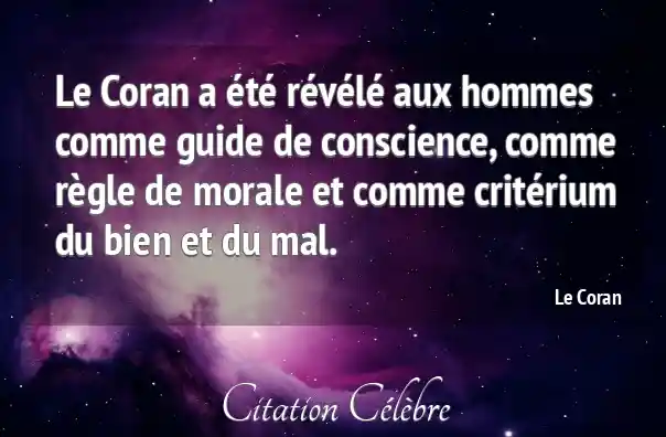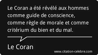 Le Coran a été révélé aux hommes comme guide de conscience, comme règle de morale et comme critérium du bien et du mal.