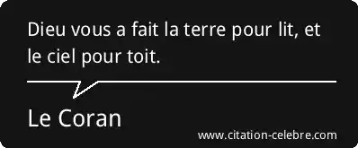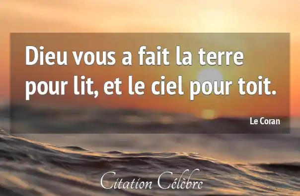 Dieu vous a fait la terre pour lit, et le ciel pour toit.