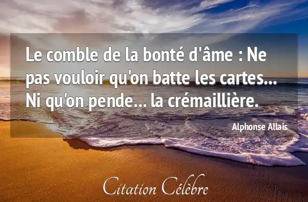 Le comble de la bonté d'âme : Ne pas vouloir qu'on batte les cartes... Ni qu'on pende... la crémaillière.