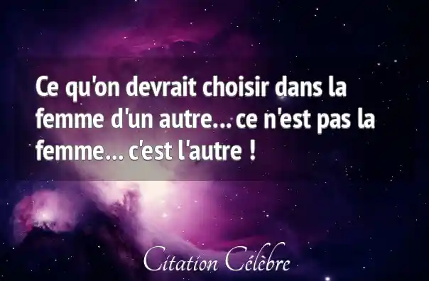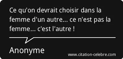 Ce qu'on devrait choisir dans la femme d'un autre... ce n'est pas la femme... c'est l'autre !