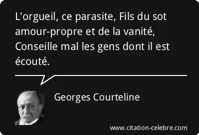 L'orgueil, ce parasite, Fils du sot amour-propre et de la vanité, Conseille mal les gens dont il est écouté.