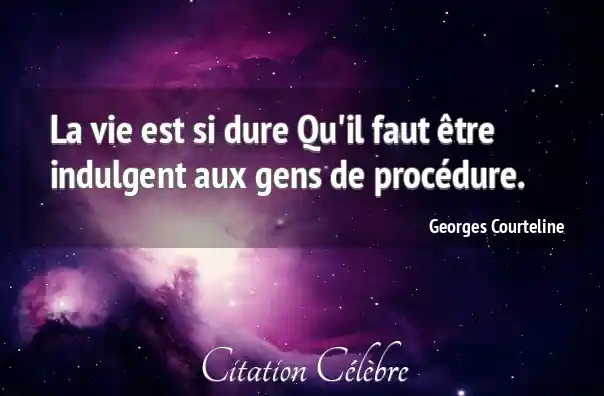 La vie est si dure Qu'il faut être indulgent aux gens de procédure.