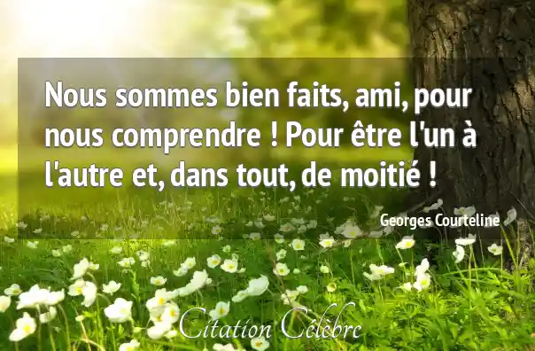 Nous sommes bien faits, ami, pour nous comprendre ! Pour être l'un à l'autre et, dans tout, de moitié !