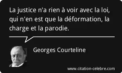 La justice n'a rien à voir avec la loi, qui n'en est que la déformation, la charge et la parodie.