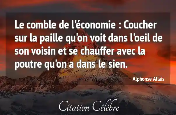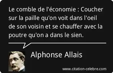 Le comble de l'économie : Coucher sur la paille qu'on voit dans l'oeil de son voisin et se chauffer avec la poutre qu'on a dans le sien.