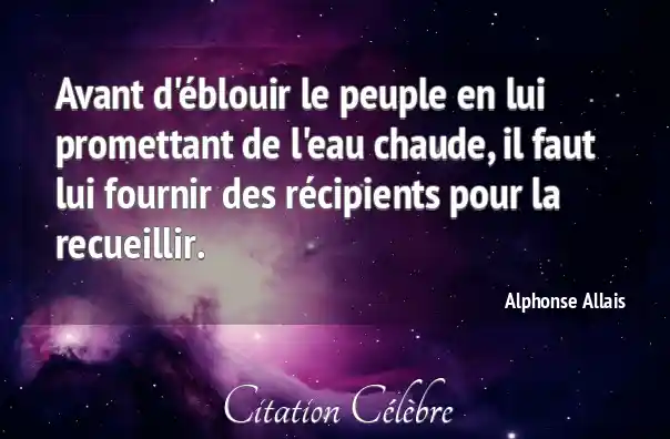 Avant d'éblouir le peuple en lui promettant de l'eau chaude, il faut lui fournir des récipients pour la recueillir.