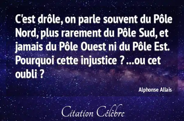 C'est drôle, on parle souvent du Pôle Nord, plus rarement du Pôle Sud, et jamais du Pôle Ouest ni du Pôle Est. Pourquoi cette injustice ? ...ou cet oubli ?