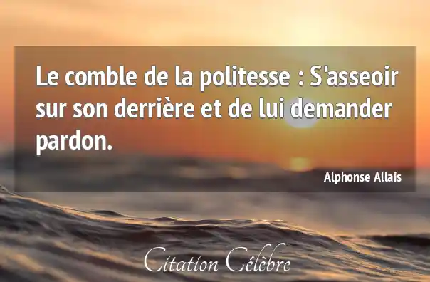 Le comble de la politesse : S'asseoir sur son derrière et de lui demander pardon.