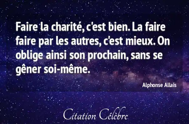 Faire la charité, c'est bien. La faire faire par les autres, c'est mieux. On oblige ainsi son prochain, sans se gêner soi-même.