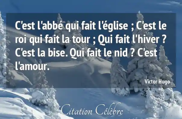 C'est l'abbé qui fait l'église ; C'est le roi qui fait la tour ; Qui fait l'hiver ? C'est la bise. Qui fait le nid ? C'est l'amour.