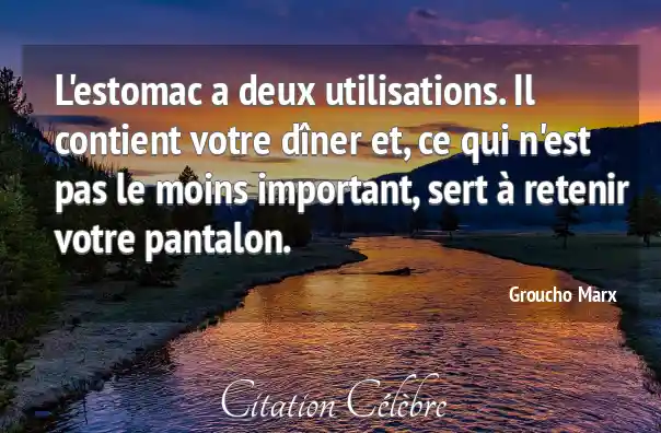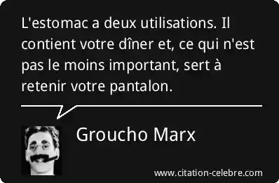 L'estomac a deux utilisations. Il contient votre dîner et, ce qui n'est pas le moins important, sert à retenir votre pantalon.