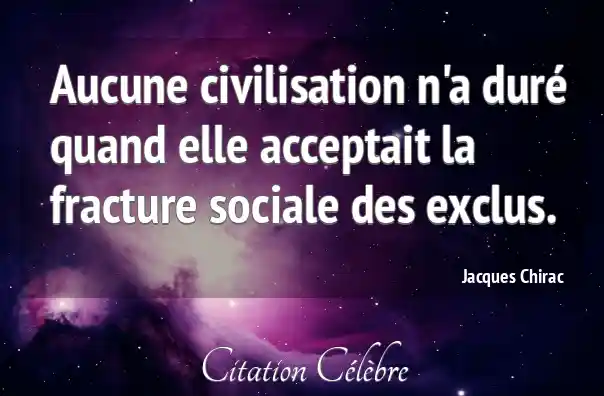 Citation Jacques Chirac sociale : Aucune civilisation n'a duré quand elle acceptait la fracture sociale...