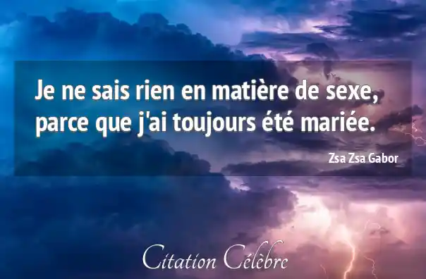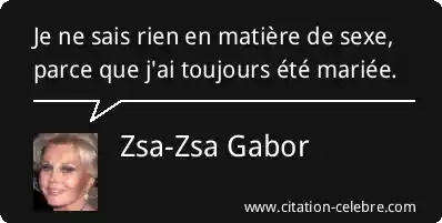 Je ne sais rien en matière de sexe, parce que j'ai toujours été mariée.
