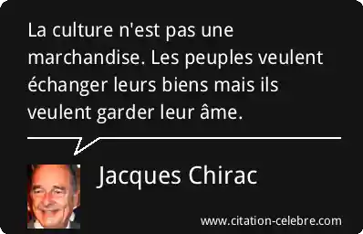 Citation Jacques Chirac culture : La culture n'est pas une marchandise. Les peuples veulent échanger...