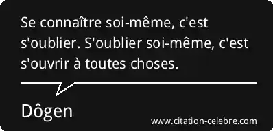 Se connaître soi-même, c'est s'oublier. S'oublier soi-même, c'est s'ouvrir à toutes choses.