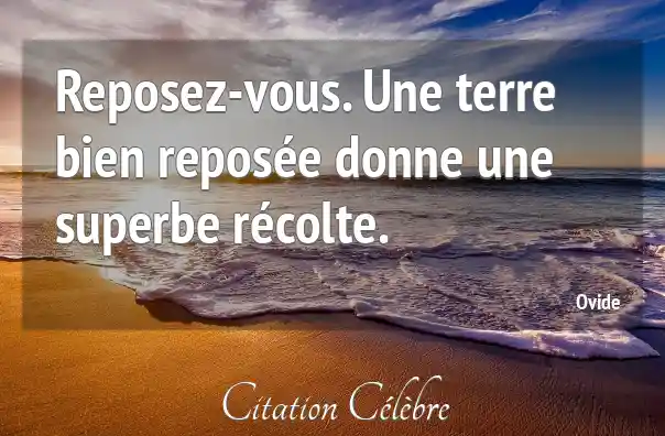 Reposez-vous. Une terre bien reposée donne une superbe récolte.