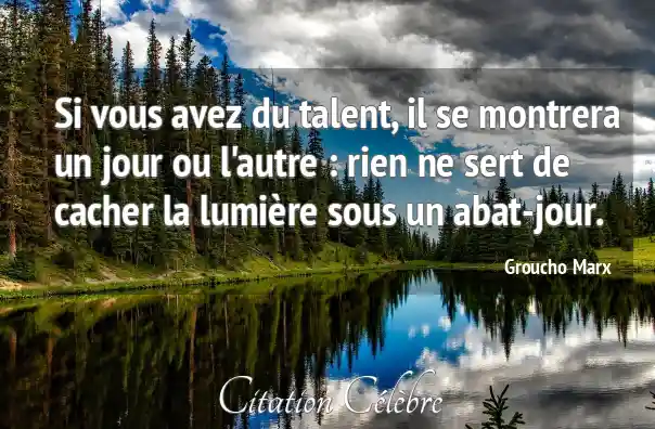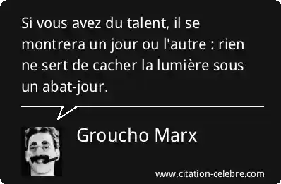 Si vous avez du talent, il se montrera un jour ou l'autre : rien ne sert de cacher la lumière sous un abat-jour.