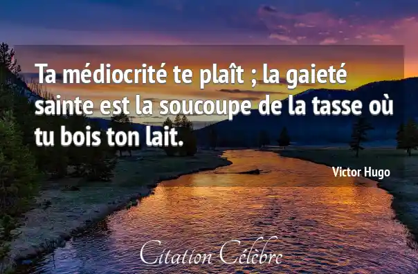 Ta médiocrité te plaît ; la gaieté sainte est la soucoupe de la tasse où tu bois ton lait.