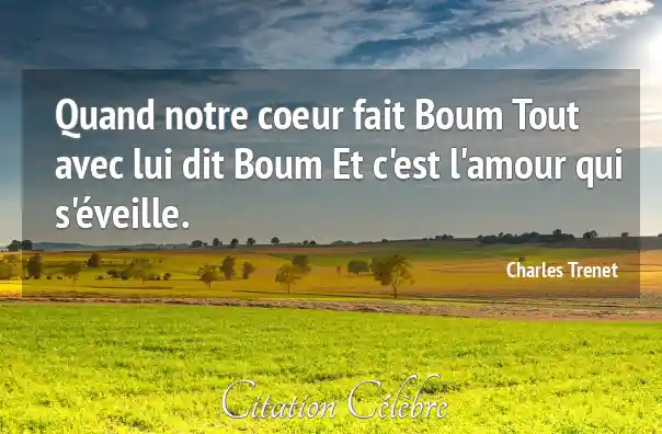 Quand notre coeur fait Boum Tout avec lui dit Boum Et c'est l'amour qui s'éveille.