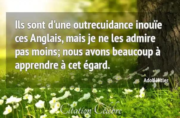 Ils sont d'une outrecuidance inouïe ces Anglais, mais je ne les admire pas moins; nous avons beaucoup à apprendre à cet égard.
