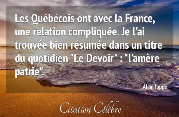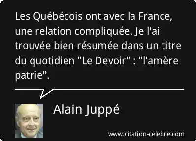 Les Québécois ont avec la France, une relation compliquée. Je l'ai trouvée bien résumée dans un titre du quotidien "Le Devoir" : "l'amère patrie".