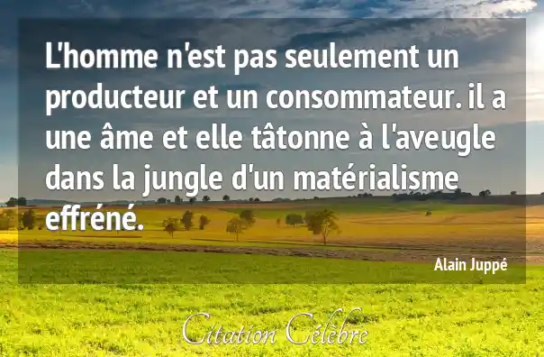 L'homme n'est pas seulement un producteur et un consommateur. il a une âme et elle tâtonne à l'aveugle dans la jungle d'un matérialisme effréné.