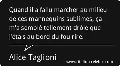 Quand il a fallu marcher au milieu de ces mannequins sublimes, ça m'a semblé tellement drôle que j'étais au bord du fou rire.