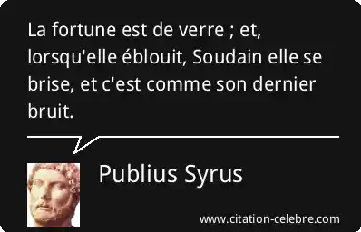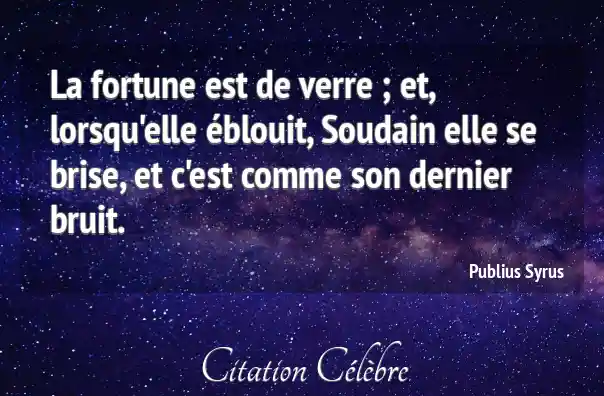 La fortune est de verre ; et, lorsqu'elle éblouit, Soudain elle se brise, et c'est comme son dernier bruit.