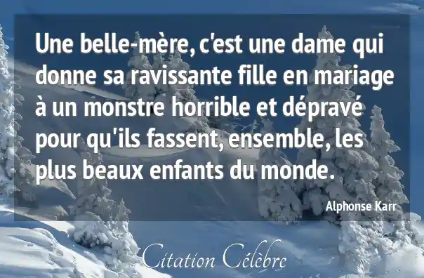 Une belle-mère, c'est une dame qui donne sa ravissante fille en mariage à un monstre horrible et dépravé pour qu'ils fassent, ensemble, les plus beaux enfants du monde.