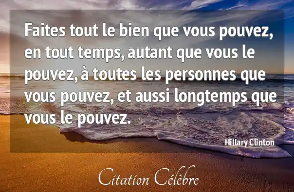 Faites tout le bien que vous pouvez, en tout temps, autant que vous le pouvez, à toutes les personnes que vous pouvez, et aussi longtemps que vous le pouvez.