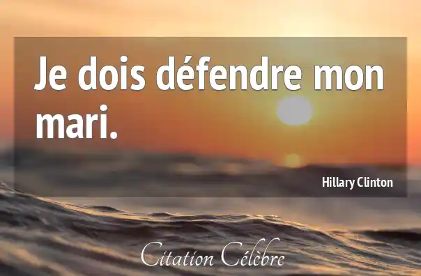 Citation Hillary Clinton mon : Je dois défendre mon mari....