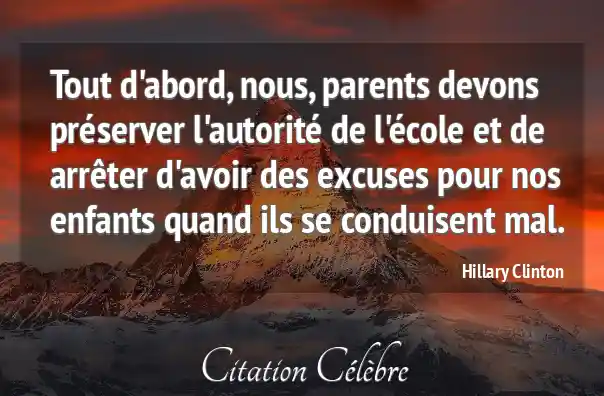 Tout d'abord, nous, parents devons préserver l'autorité de l'école et de arrêter d'avoir des excuses pour nos enfants quand ils se conduisent mal.