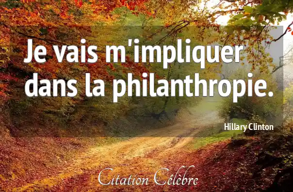 Je vais m'impliquer dans la philanthropie.