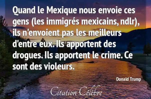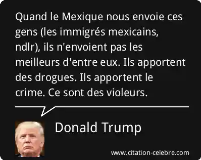 Quand le Mexique nous envoie ces gens (les immigrés mexicains, ndlr), ils n'envoient pas les meilleurs d'entre eux. Ils apportent des drogues. Ils apportent le crime. Ce sont des violeurs.