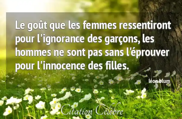 Le goût que les femmes ressentiront pour l'ignorance des garçons, les hommes ne sont pas sans l'éprouver pour l'innocence des filles.