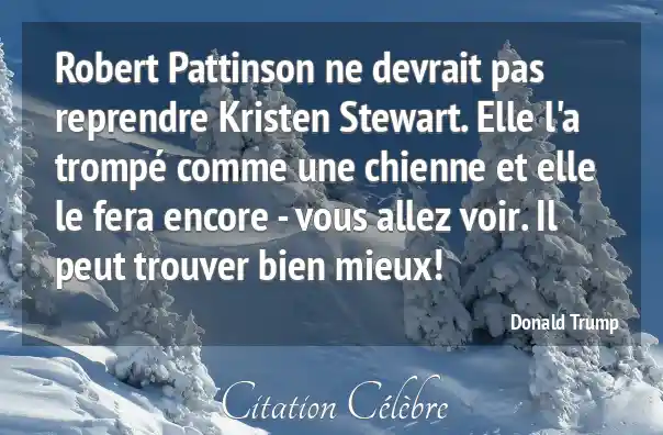 Robert Pattinson ne devrait pas reprendre Kristen Stewart. Elle l'a trompé comme une chienne et elle le fera encore - vous allez voir. Il peut trouver bien mieux!