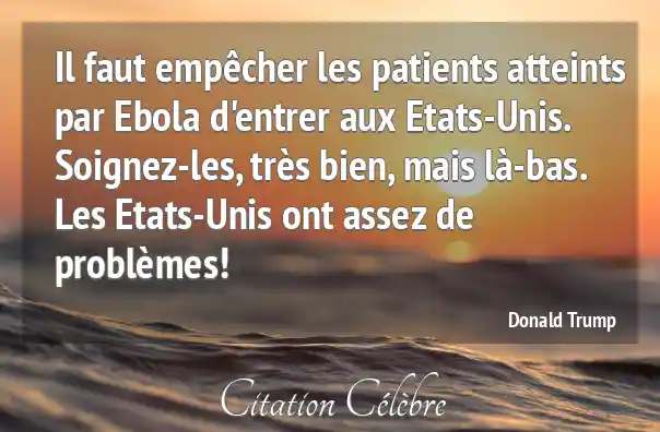 Il faut empêcher les patients atteints par Ebola d'entrer aux Etats-Unis. Soignez-les, très bien, mais là-bas. Les Etats-Unis ont assez de problèmes!