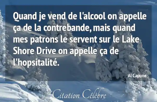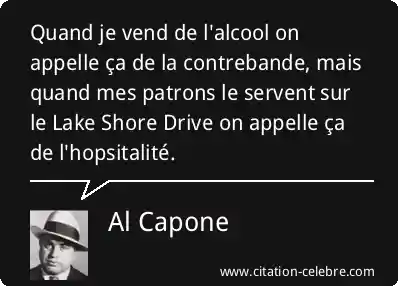 Quand je vend de l'alcool on appelle ça de la contrebande, mais quand mes patrons le servent sur le Lake Shore Drive on appelle ça de l'hopsitalité.