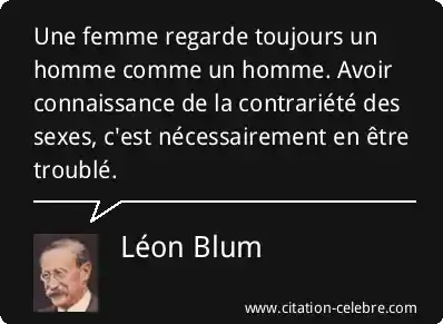 Une femme regarde toujours un homme comme un homme. Avoir connaissance de la contrariété des sexes, c'est nécessairement en être troublé.