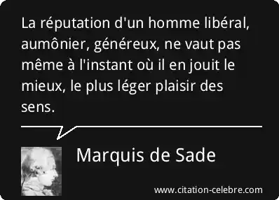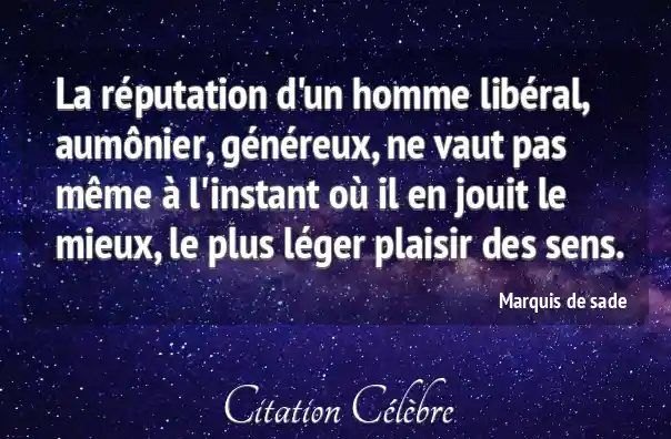 La réputation d'un homme libéral, aumônier, généreux, ne vaut pas même à l'instant où il en jouit le mieux, le plus léger plaisir des sens.