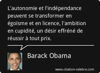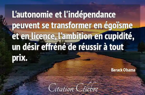 L'autonomie et l'indépendance peuvent se transformer en égoïsme et en licence, l'ambition en cupidité, un désir effréné de réussir à tout prix.