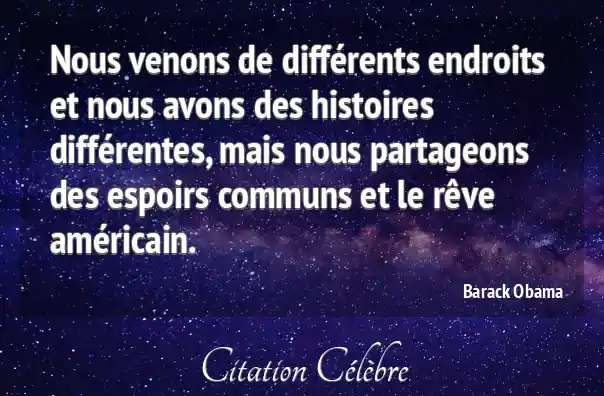 Nous venons de différents endroits et nous avons des histoires différentes, mais nous partageons des espoirs communs et le rêve américain.