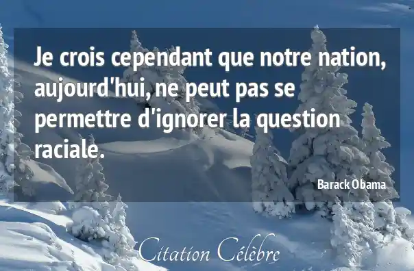Je crois cependant que notre nation, aujourd'hui, ne peut pas se permettre d'ignorer la question raciale.