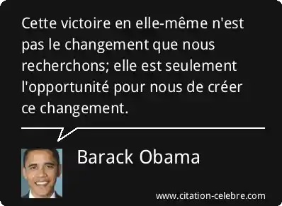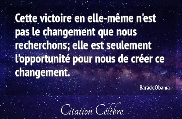 Cette victoire en elle-même n'est pas le changement que nous recherchons; elle est seulement l'opportunité pour nous de créer ce changement.