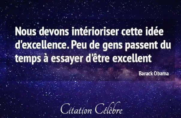 Nous devons intérioriser cette idée d'excellence. Peu de gens passent du temps à essayer d'être excellent