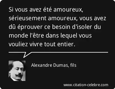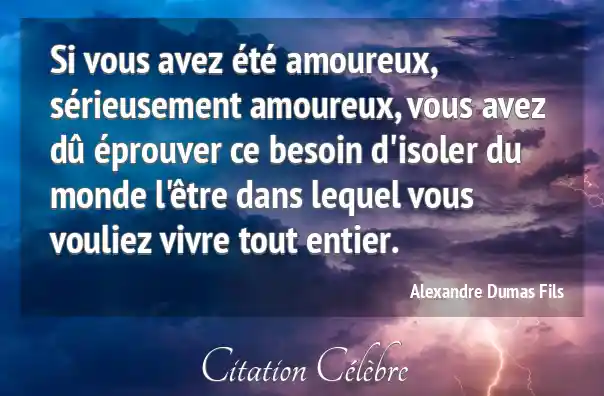 Si vous avez été amoureux, sérieusement amoureux, vous avez dû éprouver ce besoin d'isoler du monde l'être dans lequel vous vouliez vivre tout entier.