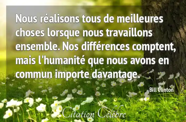 Nous réalisons tous de meilleures choses lorsque nous travaillons ensemble. Nos différences comptent, mais l'humanité que nous avons en commun importe davantage.
